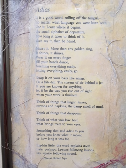I read this poem, fittingly, on my last day in Colorado. It was a part of a piece of artwork created by one of my hosts. When I was feeling sentimental about my vacation and adventure time coming to an end. It made so much sense to me, so beautifully soft and eloquent. I can’t help but want to share it.